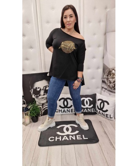 Asymetryczna bluzka z modną naszywką misia. Model maskujący wszelkie niedoskonałości. Pasuje do jeansów oraz legginsów. Stanowi idealną bazę pod kurtkę, ramoneskę oraz katanę. Uszyta jest w kształt literki A.