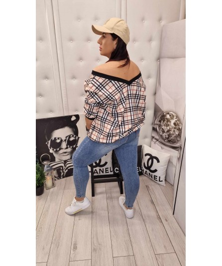 Oversizowy model bluzy z głębokim dekoltem w serek, który jest zarówno z przodu, jak i z tyłu. Cudownie printowana bawełna, przepiękne połączenia kolorystyczne.