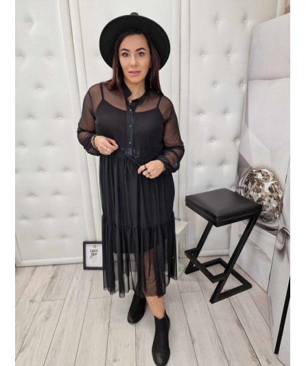 Sukienka dwuwarstwowa, bawełniana krótsza halka i dłuższa mięciutka siateczka.