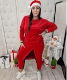 Cudowny komplet dresowy, wykonany z mięciutkiego wręcz dziecięcego welurku. Komplet sprawdzi się idealnie na  świąteczne dłuższe podróże, a takżeprzy okazji świątecznego wypoczynku czy  leniuchania w  domku. Bluza posiada obniżoną linię ramion, natomiast spodnie mają w pasie troczek,który umożliwia dopasowanie ich do sylwetki.