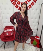 Cudowna sukienka ze zmysłowym dekoltem na kim. Ozdobne wiązanie z lewej strony. Szyfonowy rękawek. Idealna na sylwestra, Barbórkę oraz Andrzejki