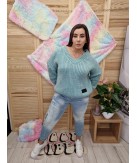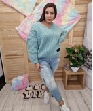 Model z dekoltem w serek posiada dodatkowo ściągacze na zakończeniu rękawów oraz dolnej krawędzi. Sweter dostępny jest w wielu wersjach kolorystycznych.
