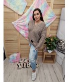 Model z dekoltem w serek posiada dodatkowo ściągacze na zakończeniu rękawów oraz dolnej krawędzi. Sweter dostępny jest w wielu wersjach kolorystycznych.