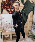 Mięciutki welur, z którego został wykonany kombinezon, układa się idealnie do kobiecego ciała. Jest mega wygodny i idealny na chłodniejsze dni . W pasie posiada gumkę i troczek co umożliwia dopasowanie go i delikatne zbluzowanie. Kombinezon posiada seksowny zamek na jednym ramieniu, który można rozpiąć
